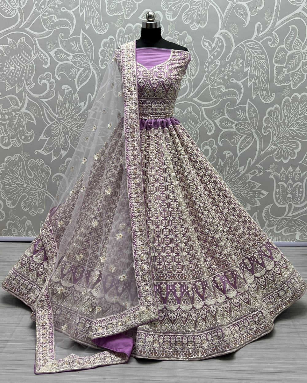 Sequence and patterned thread embroidery Designer Lilac Lehengacholi