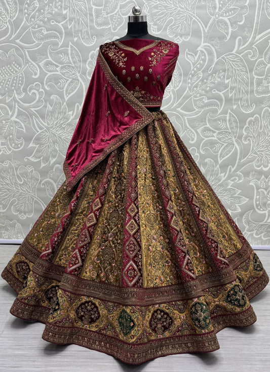 Alternate Rani Pink Velvet Kali work and Fancy embroidered Lehenga choli with double dupatta