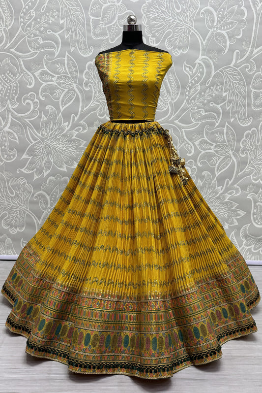 Crush Mill Printed with Beautiful Latkan Low Weight Lehengacholi