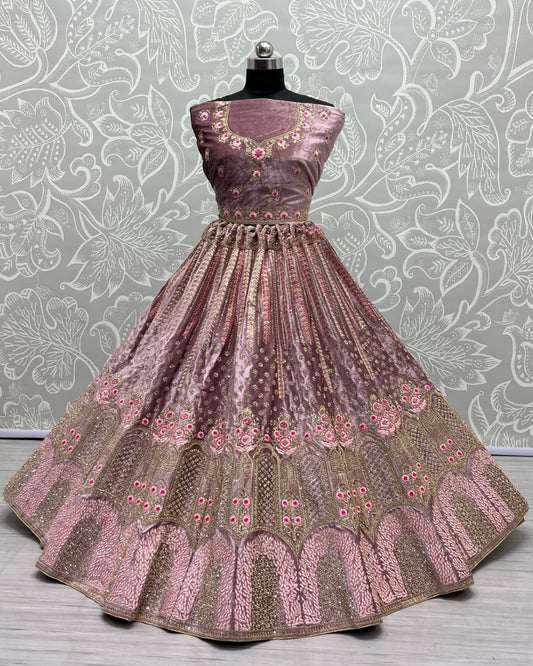 Pastel Color Velvet Embroidered Elaichi green Lehenga choli