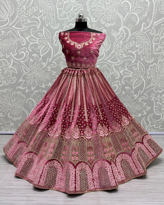 Full of Zircon Diamond studded Rani Pink Lehenga choli for Party