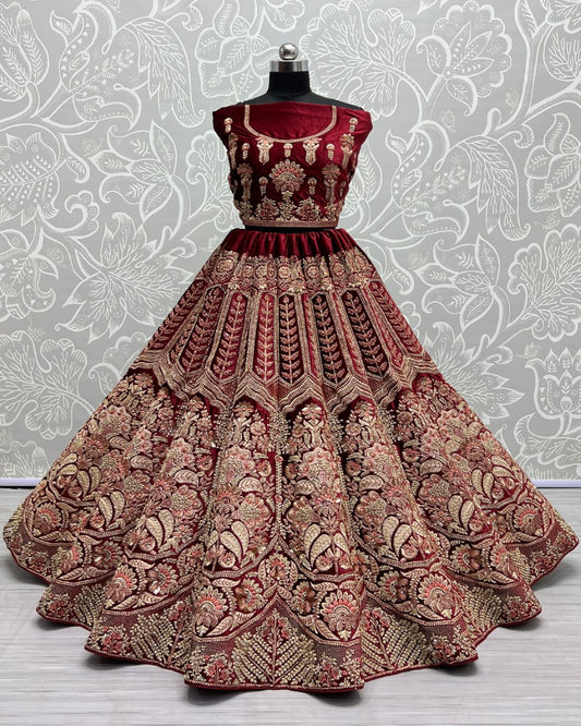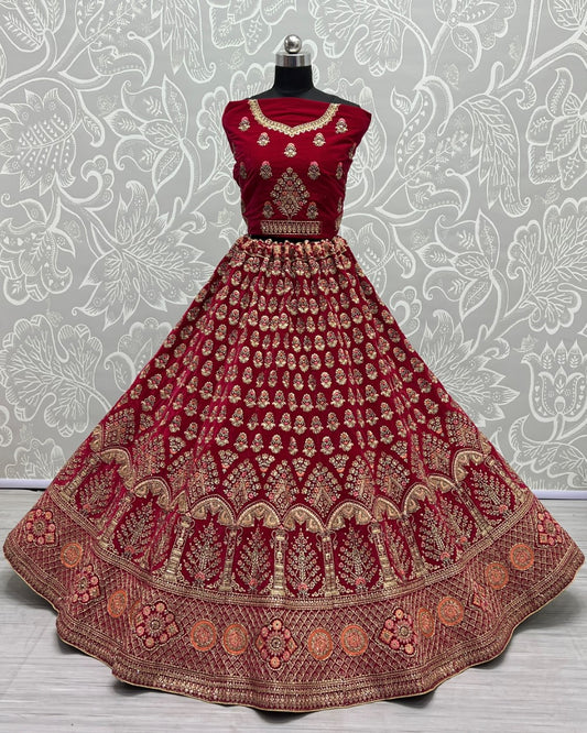 Fancy Dori embroidered and Multi thread work Velvet Lehengacholi