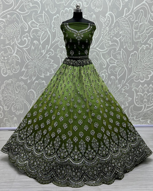 Sequins and Dori embroidery Mehendi Rasam lehenga choli