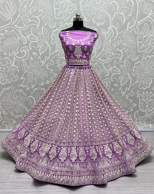 Sequence and patterned thread embroidery Designer Lilac Lehengacholi