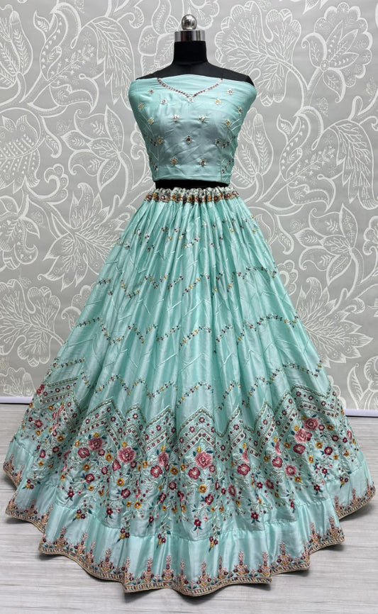 Eye catchy Embroidered Lehengacholi in SeaBlue