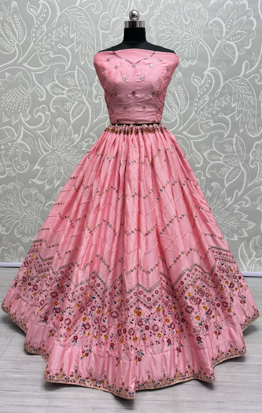 Eye catchy sober color range Embroidered Lehengacholi in Pink