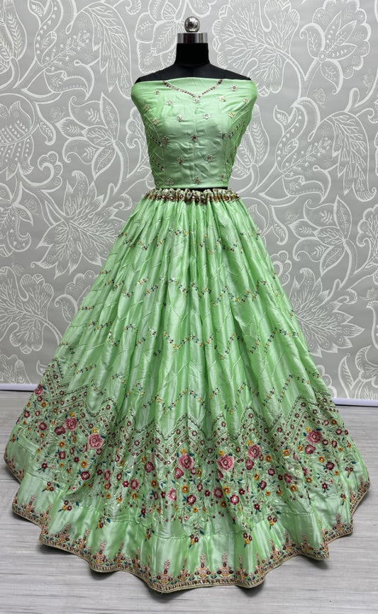 Eye catchy sober color range Embroidered Lehengacholi in Sea Green