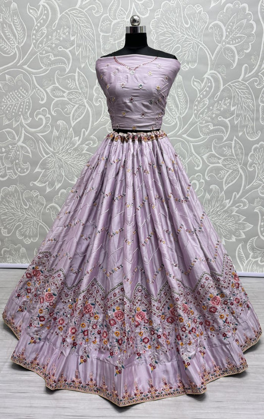 Eye catchy sober color range Embroidered Lehengacholi in Thistle