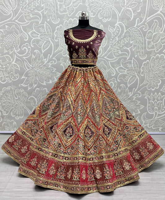 Golden Gota bordered fancy embroidered Purple Lehengacholi