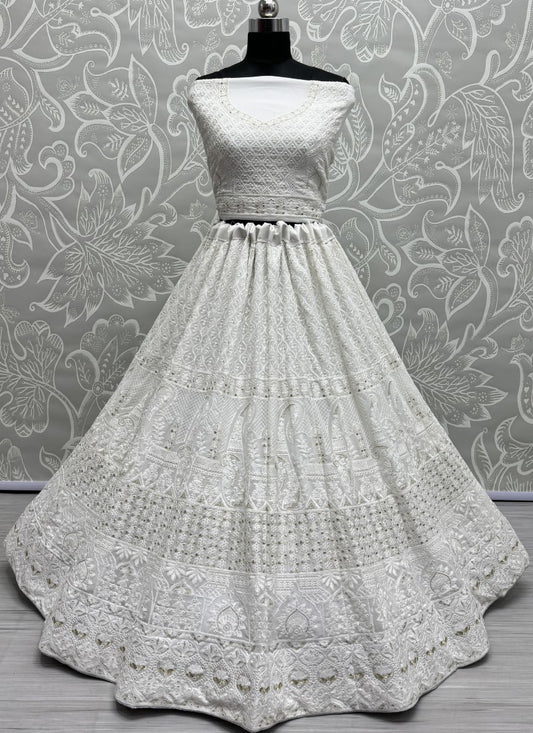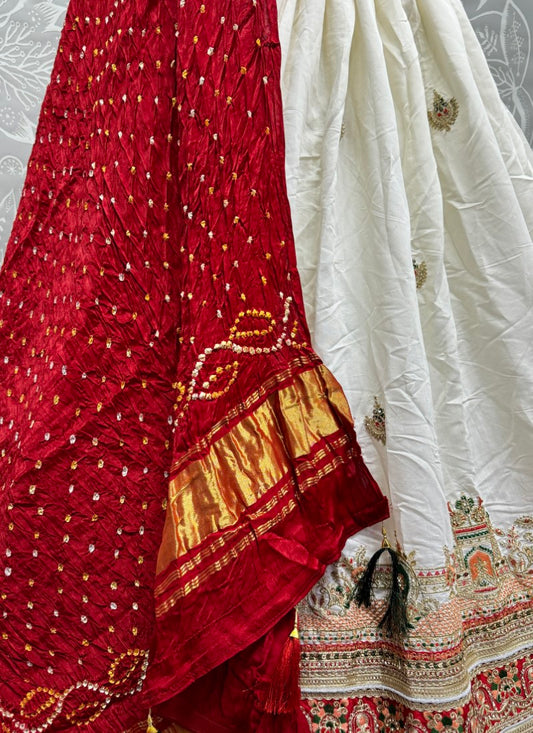 Georgette fabric cotton thread work Lehengacholi with pure Bandhani dupatta