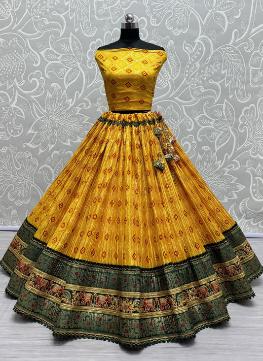 Golden Gota bordered fancy embroidered Mehendi Lehengacholi