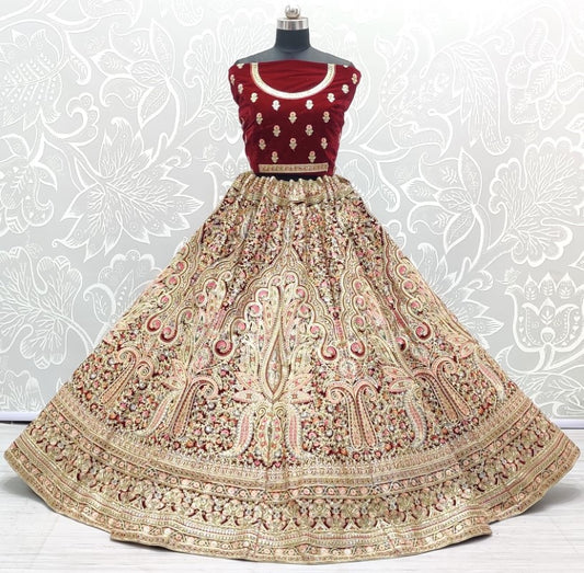 Golden Velvet Attached Multi Embroidered Lehengacholi