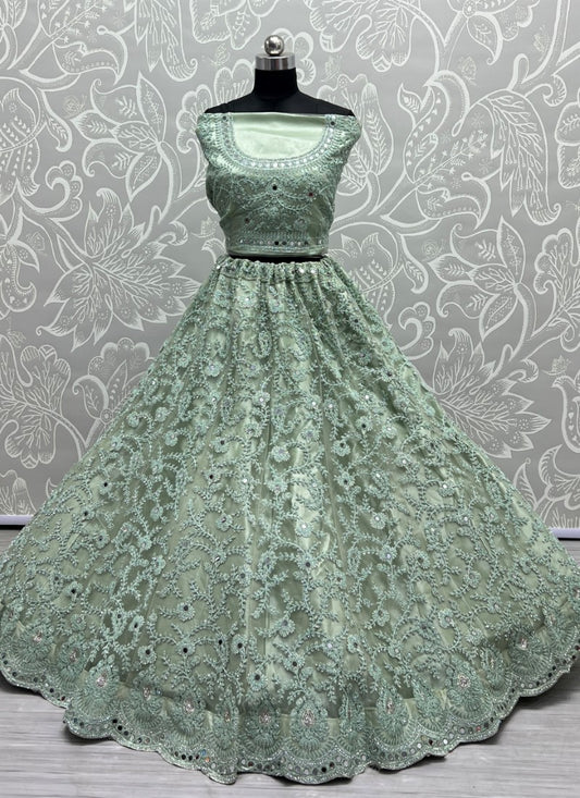 Heavy Bridal Net Embroidered Zircon diamond work Designer PIsta Lehengacholi