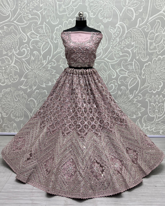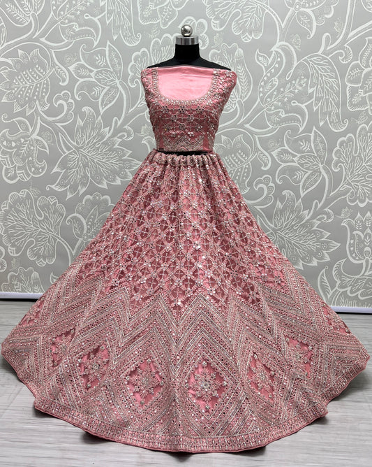 Heavy embroidery with mirror work designer Pink Lehengacholi