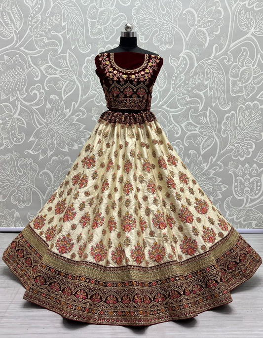 Beautifully designed and Perfect Matching Designer Lehengacholi Cream