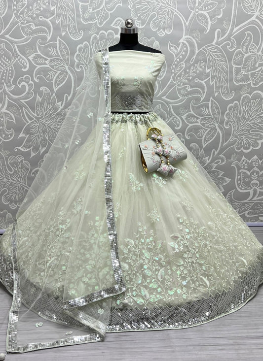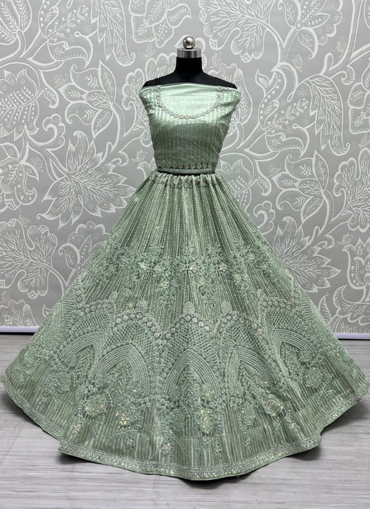 Real mirror and Multi sequins work Bollywood Style Pista Lehengacholi