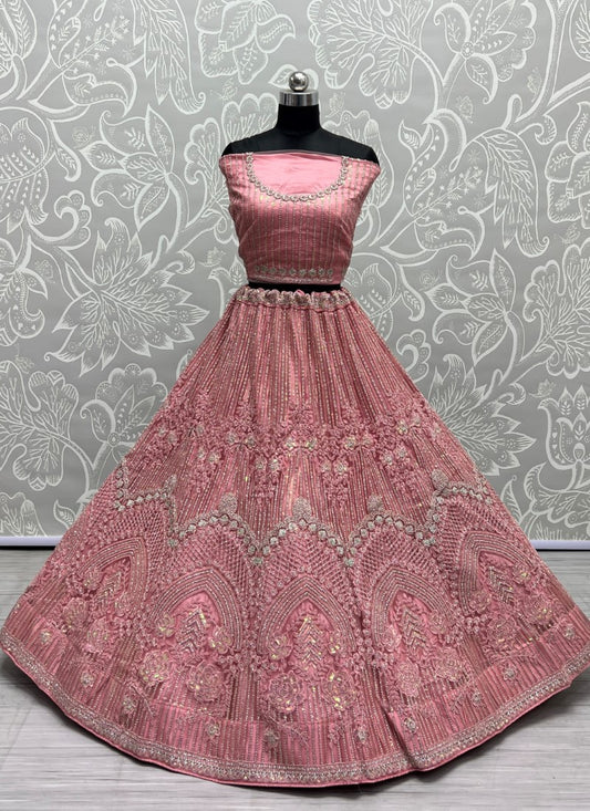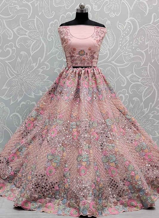 Real mirror and Multi sequins work Bollywood Style Pink Lehengacholi