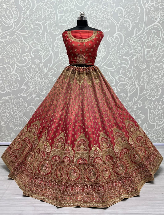 Red Bridal shaded Net Metallic Embroidered Party wear Lehengacholi