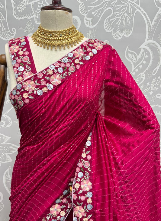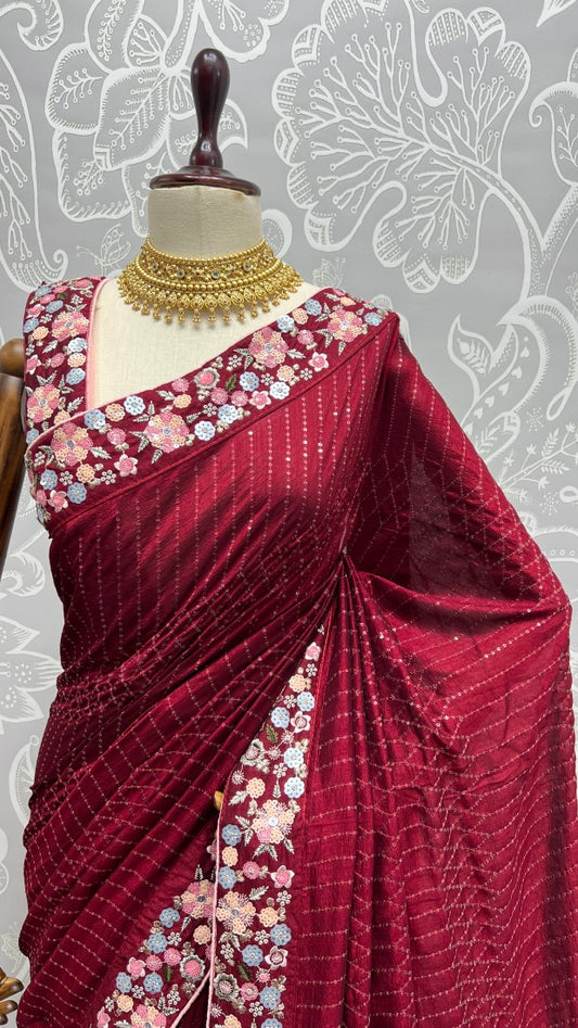 Red Silk Patola with Sequence, Thread Embroidery, Zari Work