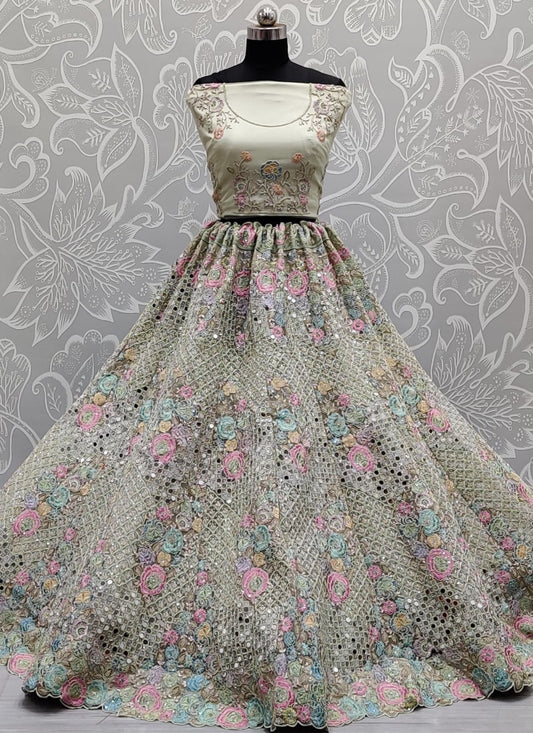 Rainbow sequins Flower Pattern Net Party Wear Pista Lehengacholi