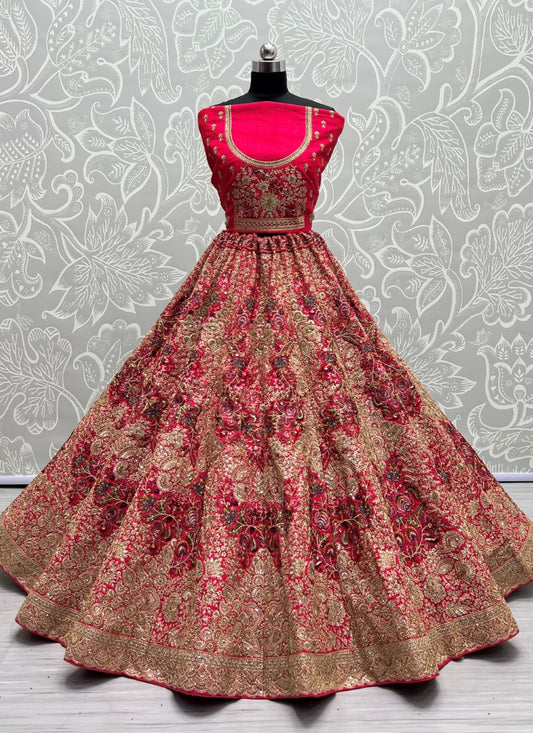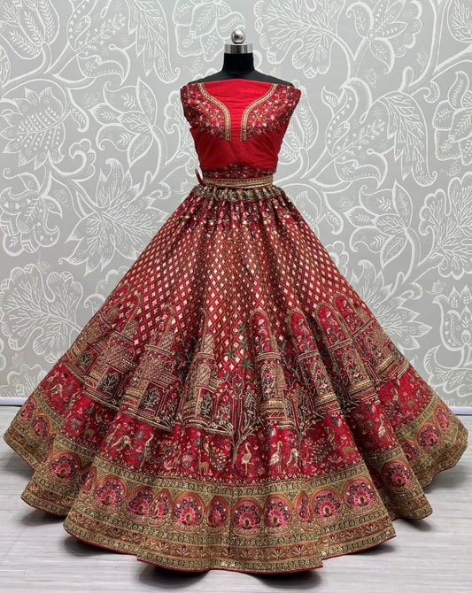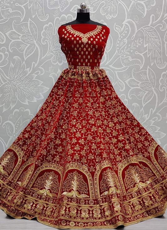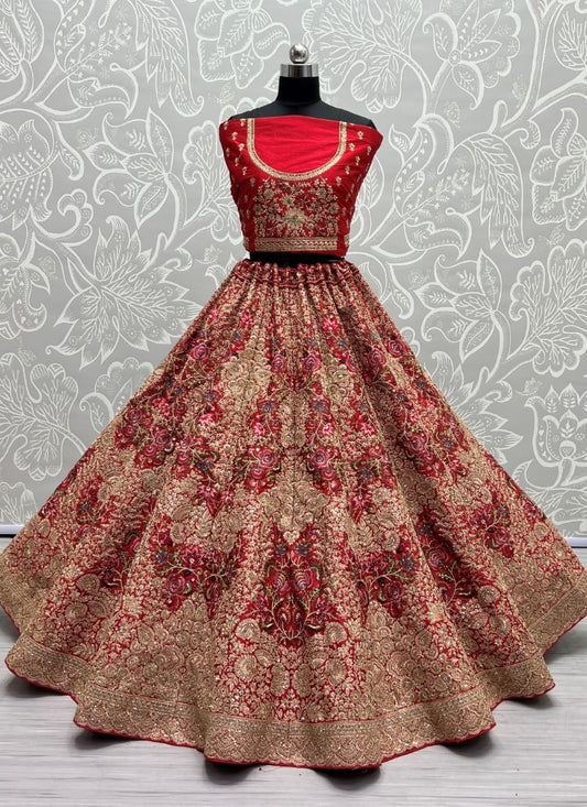 Silk Crafted Designer Flaired Bridal Red Lehengacholi
