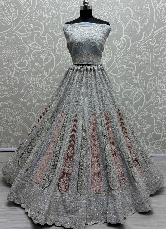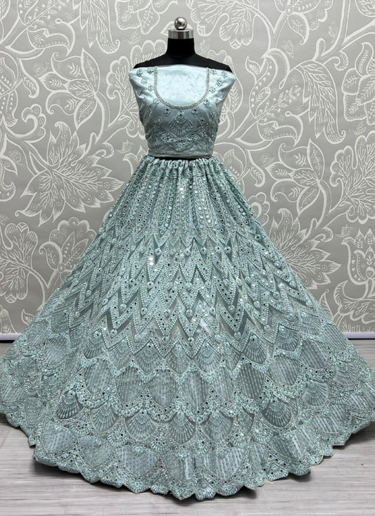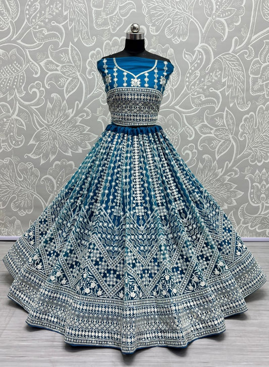 Thread and Sequins work Designer Party Wear Blue Lehengacholi