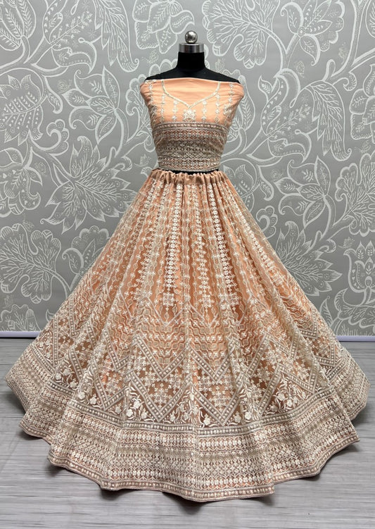 Thread and Sequins work Designer Party Wear Peach Lehengacholi