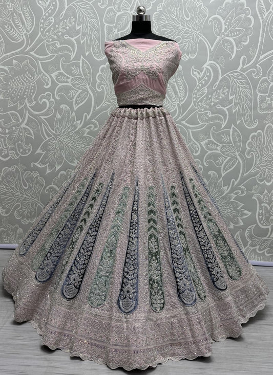 Thread and Sequins work Designer Party Wear Mauve Lehengacholi