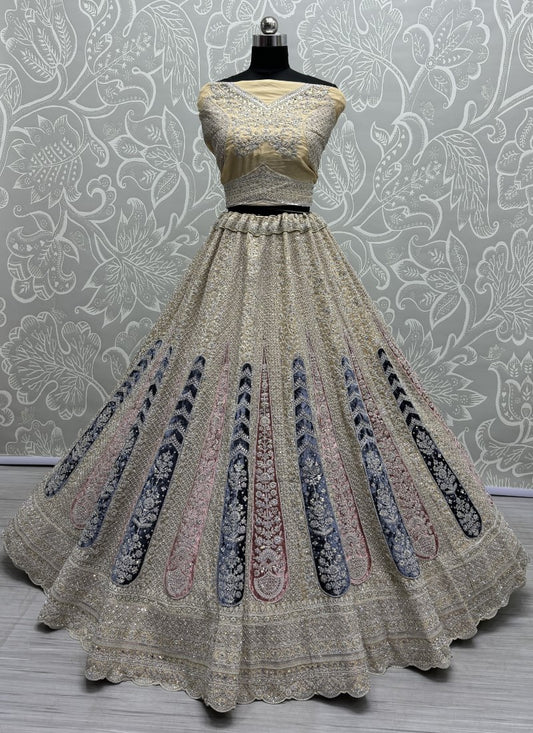 Thread and Sequins work Designer Party Wear Yellow Lehengacholi