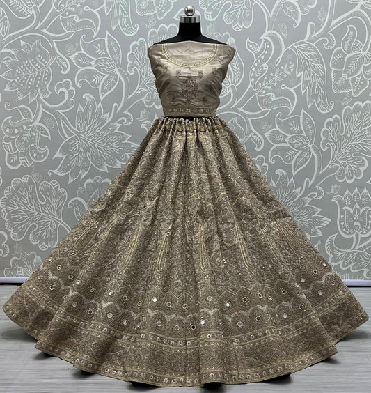 Tone to tone handwork look dori embroidered exclusive collection of Chicku Lehengacholi