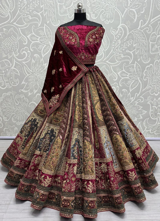 Very Well Detailed Embroidery Partywear Paroot Lehengacholi