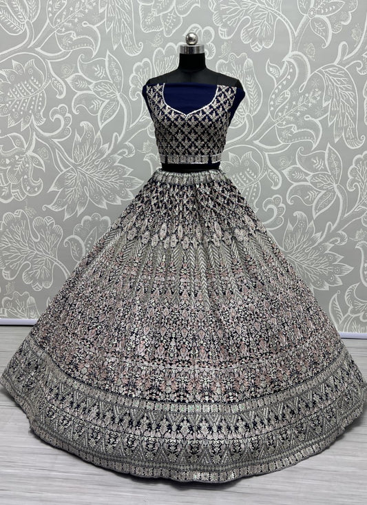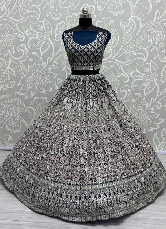 Chapat Zari and cotton Thread Embroidered Beautiful blue shade Morpich Lehengacholi