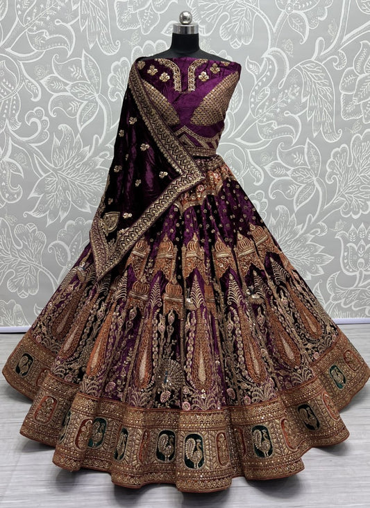 Captivating Designed of Thread and Dori work Crafted Lehenga choli Purple