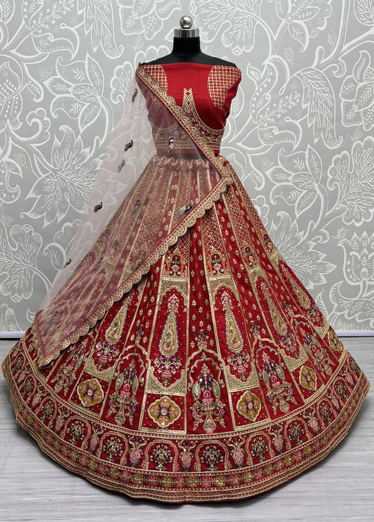 Charismatic Hand khatali work with Zardosi and differnt embroidery crafted bridal Red Lehengacholi