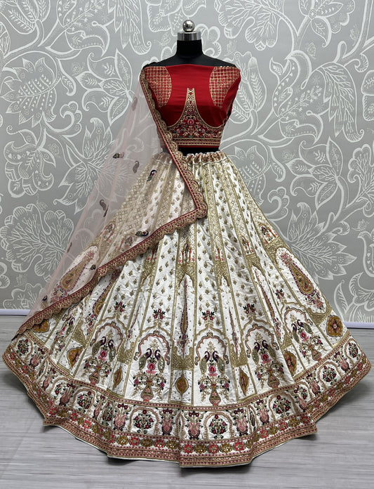 Charismatic Hand khatali work with Zardosi and differnt embroidery crafted bridal White Lehengacholi