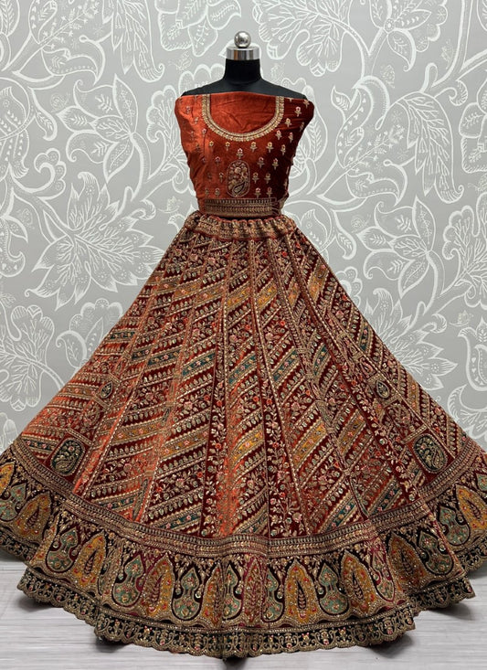 Designer Embroidered handwork Look Exclusive Bridal Brownest Orange Lehengacholi