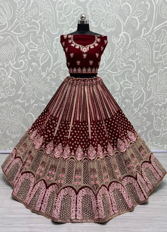 Dark Range in Velvet Embroidered with full of Zircon Diamond studded Lehenga choli Marron