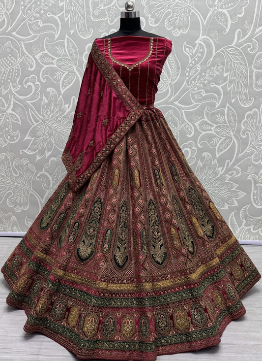 Designed Embroidered Patch and Multi thread work Lehengacholi in Maroon
