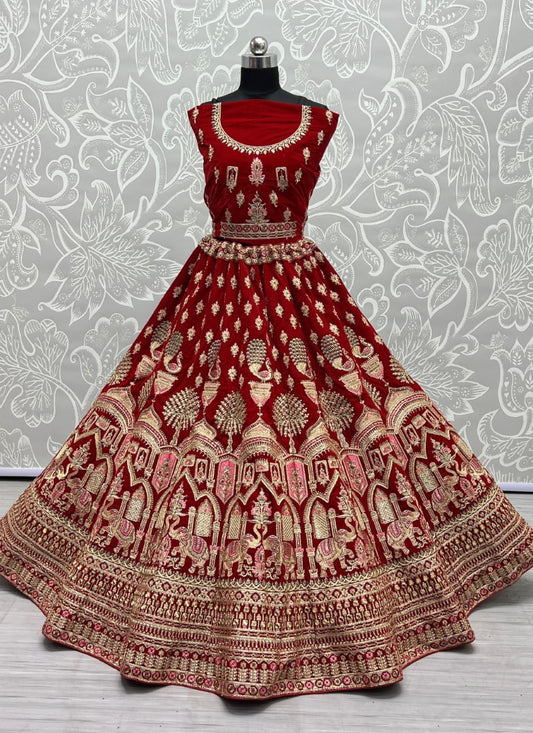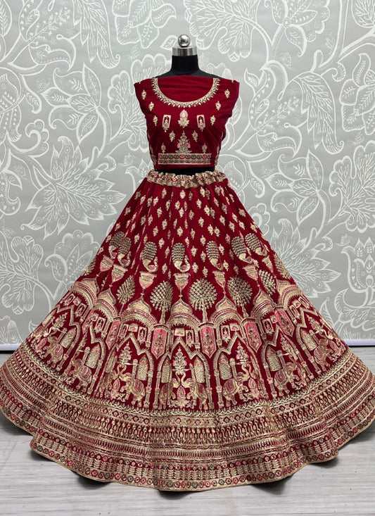 Designer Gajraj Embroidered Red Velvet Lehengacholi