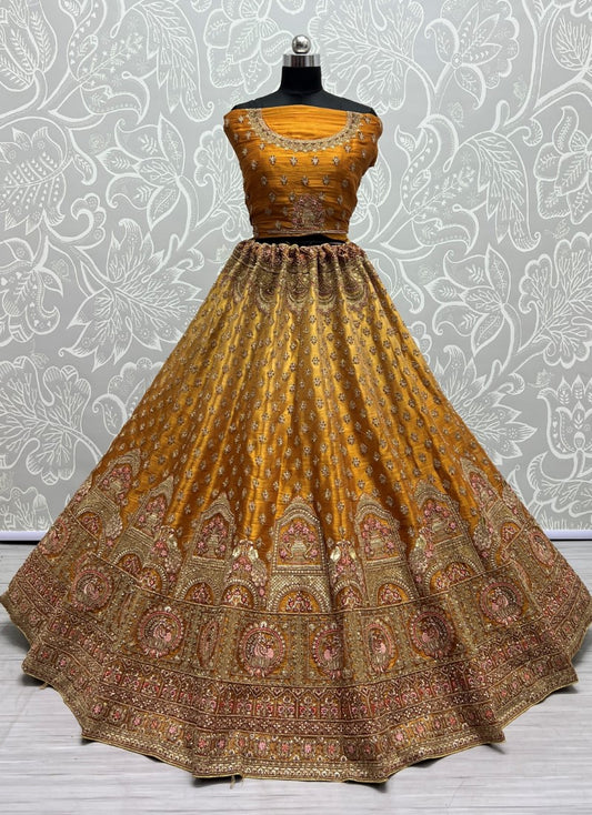 Silk Mor Embroidered Heavy Mustard Lehengacholi