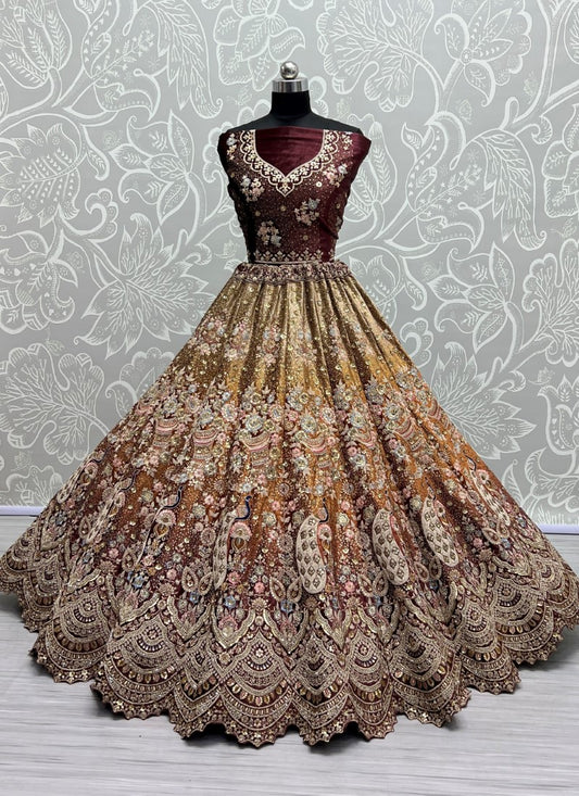 Sequence and patterned thread embroidery Designer Lehengacholi