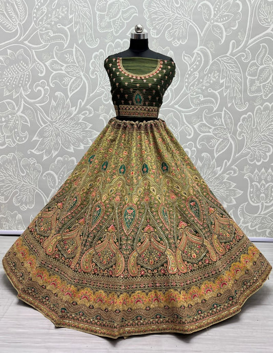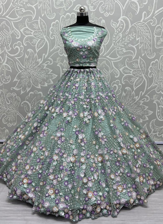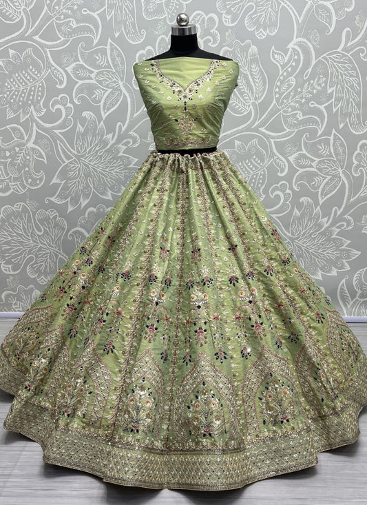 Perfect Partywear Cadbury Silk Dori and Sequince embroidered Lehenga Choli Lite Green