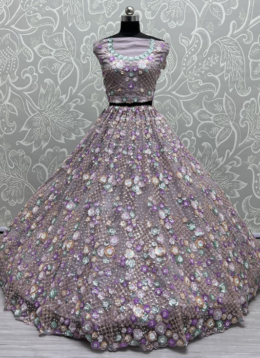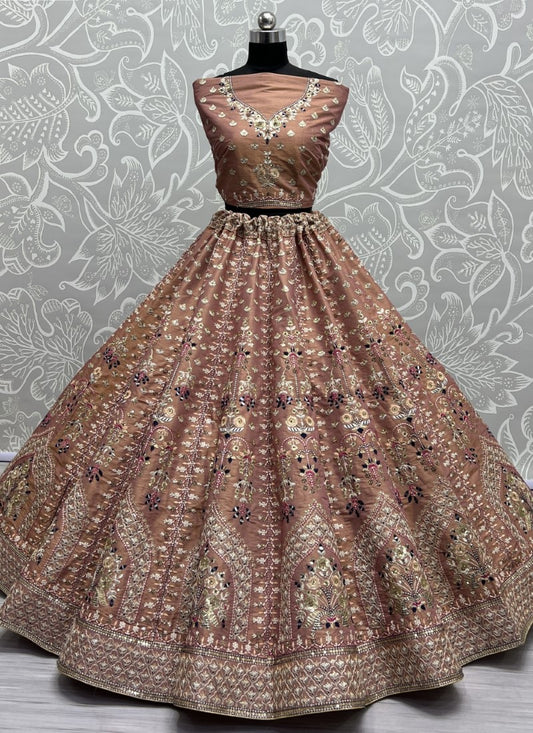 Perfect Partywear Cadbury Silk Dori and Sequince embroidered Lehenga Choli Brown