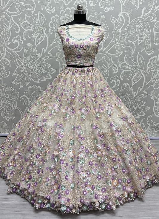 Trending Handwork Motif and Sequince Combine Designer Partywear Lehengacholi White