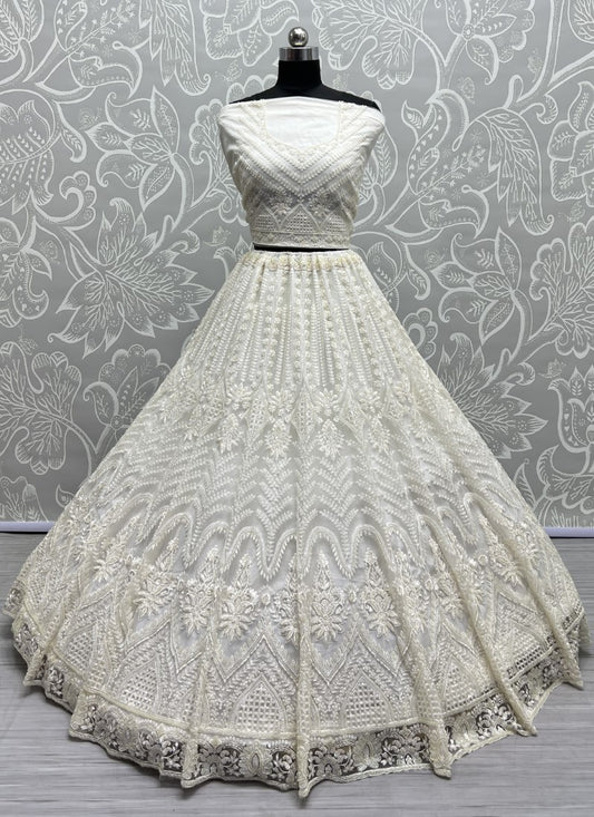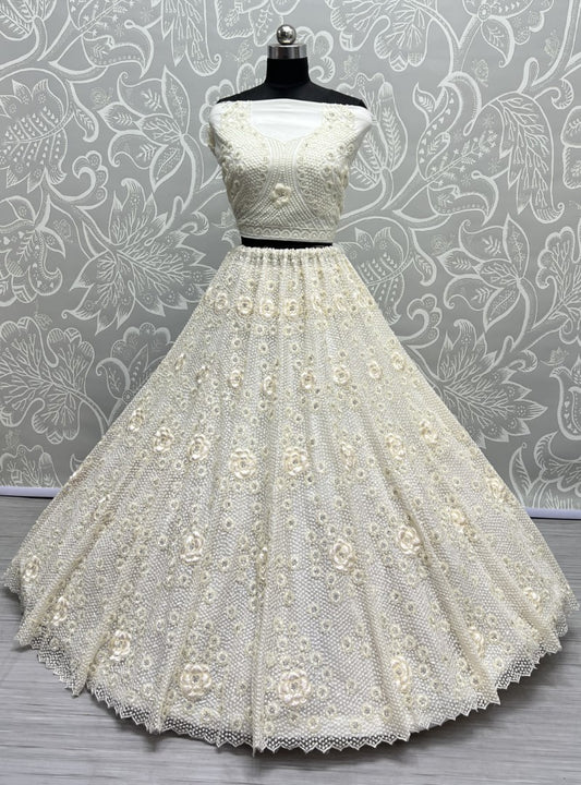Perfect Partywear Full of Motif Handwork Designer Lehenga choli White