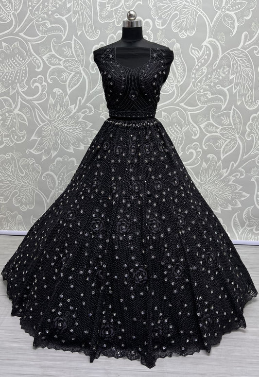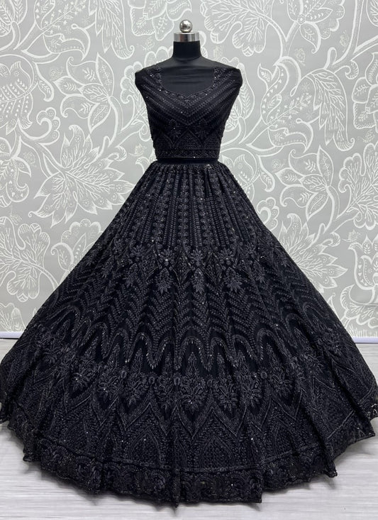 Trending Handwork Motif and Sequince Combine Designer Partywear Lehengacholi Black