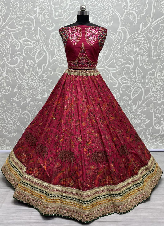 Meena Silk Carfted Printed Lehenga with Pure Bandhani Dupatta style partywear Lehengacholi Pink