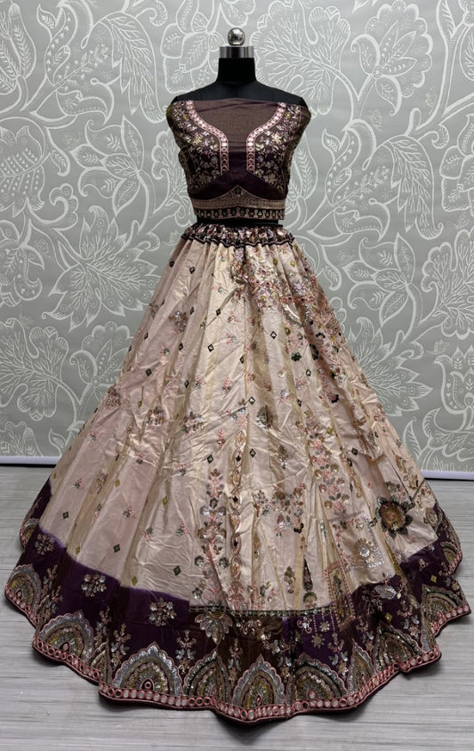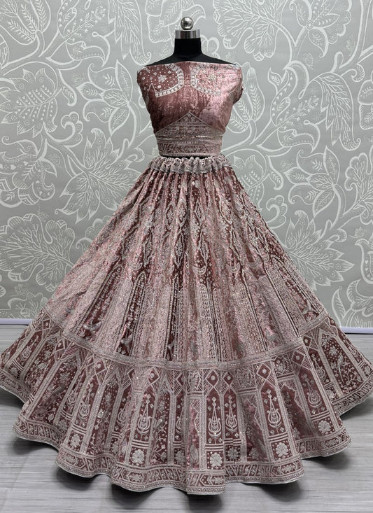 Exquisite look couture patterned partywear with beautiful dupatta Lehengacholi in Tea