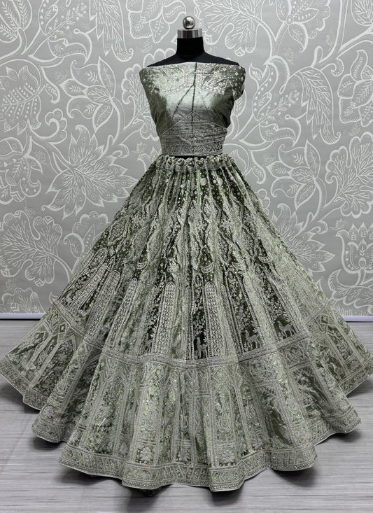 Urging fancy embroidery work leather color range partywear Lehengacholi in Steel