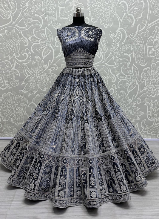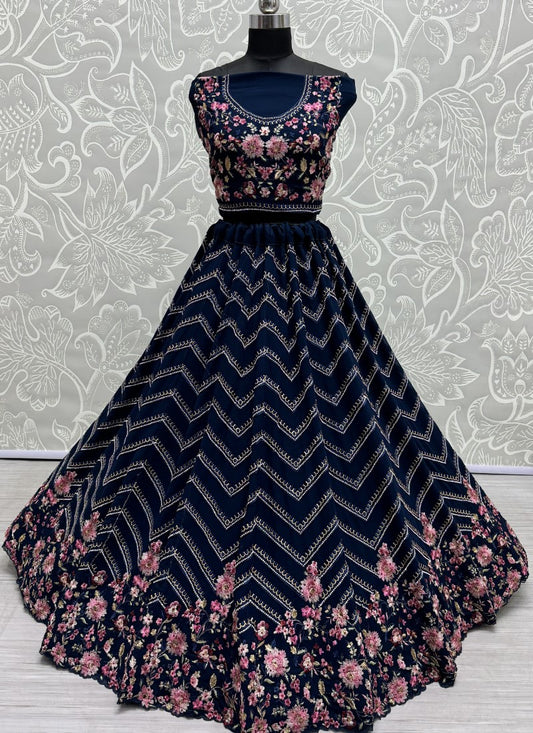 Stunning partywear In various embroidered combine Lehengacholi in Indigo